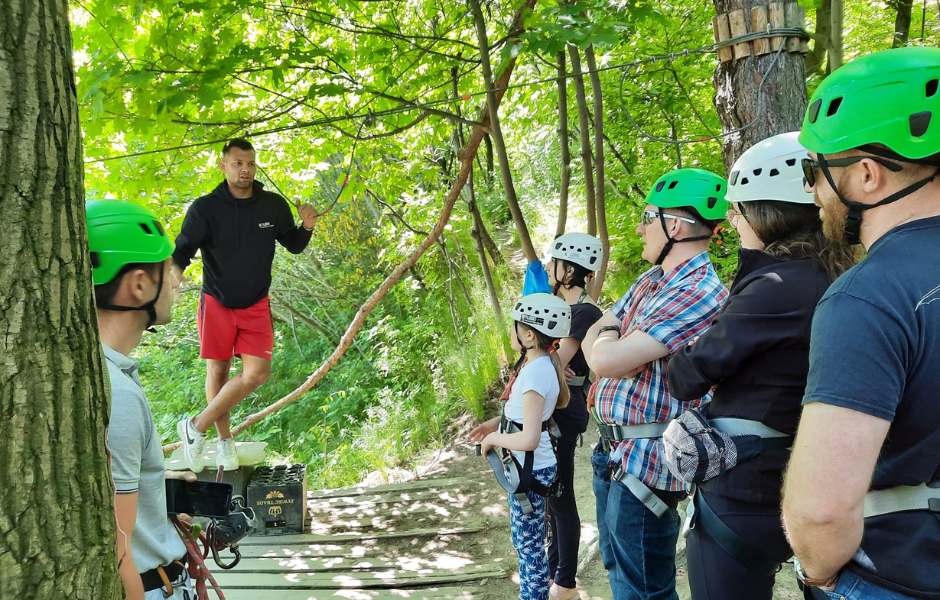 Jedną z głównych atrakcji pikniku był paintball – dla wielu osób to nie lada gratka, by sprawdzić swoje umiejętności strzeleckie i taktyczne. Dla odważnych przygotowaliśmy także tyrolkę, która zapewniła solidny zastrzyk adrenaliny i niezapomniane wrażenia z lotu nad parkiem.